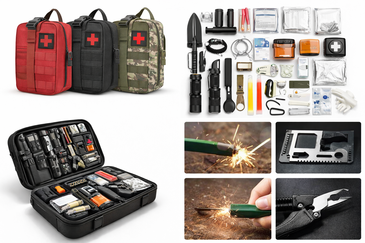 A complete emergency kit for car + home readiness. This “big kit” is designed to cover the most common situations where you need light, basic first-aid supplies, and practical tools — all packed in an organized pouch that’s easy to grab and store.